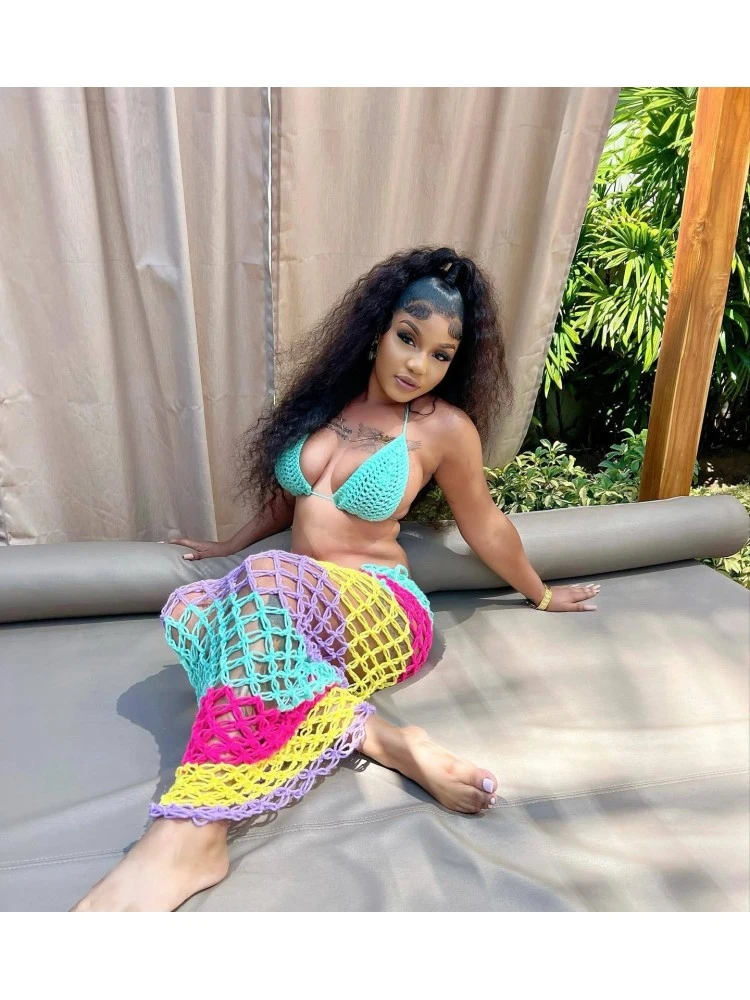 Colorblock,Geometric Pattern,Hollow Out,Hook Flower