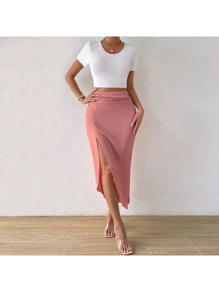 Patchwork,Ruched,Split Hem