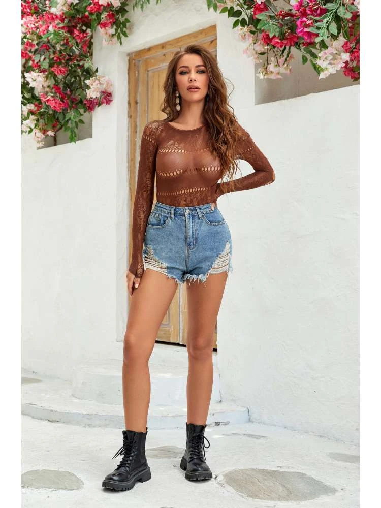 Patchwork,Pure Color,Solid Color,Plain Color,Ripped,See Through,Hollow-out
